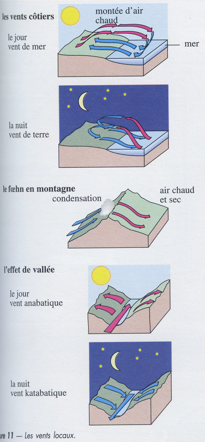 Dans son mouvement en altitude vers le nord, l'air chaud équatorial se refroisit par décompression et par un échauffement moindre. Il deviens plus dense et tend à redescendre, approximativement, au niveau des tropiques (convergence). Inversement, l'air froid des pôles se réchauffe dans son mouvement vers le sud. Il deviens moins dense et monte à la lattitude des zones tempérées (divergence). Dnas chaque hémisphère se forment de cette manière deux zones de haute pression, la zone des haute pressions polaires et la zone des haute pressions tropicales, et deux zones de basse pression, la zone équatoriale et la zone tempérée.